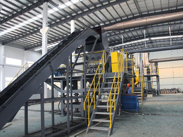 高產(chǎn)型廢舊輪胎膠粉設(shè)備配置:輪胎拉絲機(jī)——雙軸撕碎機(jī)——橡膠粉碎機(jī)——輸送帶上料機(jī)——破膠機(jī)(對(duì)輥橡膠磨粉機(jī)),磁選機(jī),纖維分離機(jī);