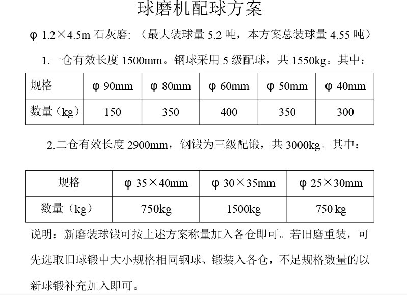 球磨機(jī)鋼球的配比方法及公式、相關(guān)知識(shí)